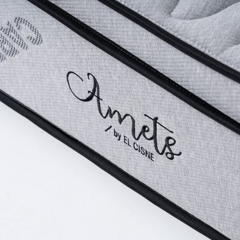 Une diseño refinado, equilibrio entre confort y resistencia, y descanso confiable con Cama Amets. La tarima de madera selecta, tratada y secada al horno aporta elegancia y resistencia al ambiente. El colchón, con sistema de resortes Bonell, garantiza un soporte firme y uniforme, acompañado de espumas de poliuretano que ofrecen confort estable. Su exclusivo tapiz con hilo de carbón contribuye a la frescura y bienestar durante el descanso. De uso one side, pensado para practicidad y larga duración, brinda una sensación de descanso firme. Todo respaldo con una garantía confiable de 10 años y 1 año en la tarima.