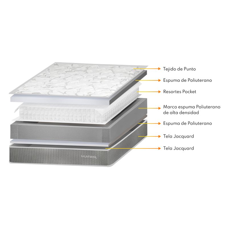Conjunto Breamar Pocket está diseñado para compartir un descanso sin interrupciones. La tarima de madera tratada, secada al horno, ofrece solidez y estilo atemporal, mientras que el colchón incorpora un sistema de resortes Pocket, que se adapta al movimiento de cada persona y reduce la transferencia de movimiento, asegurando un sueño continuo y reparador. Sus espumas de poliuretano aportan confort equilibrado, y el tapiz Jacuquard combina elegancia y durabilidad. De uso one side, ideal para quienes buscan soporte y comodidad en armonía. Respaldo con una garantía confiable de 5 años años y 1 año en la tarima.
