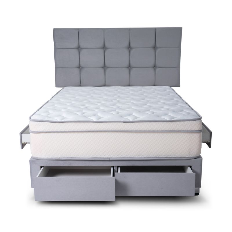 Dormitorio Breamar Pocket está diseñado para compartir un descanso sin interrupciones. La tarima con cajones de madera tratada, secada al horno, ofrece solidez y estilo atemporal, cacebera en madera selecta tapizada con tela microfibra, mientras que el colchón incorpora un sistema de resortes Pocket, que se adapta al movimiento de cada persona y reduce la transferencia de movimiento, asegurando un sueño continuo y reparador. Sus espumas de poliuretano aportan confort equilibrado, y el tapiz Jacuquard combina elegancia y durabilidad. De uso one side, ideal para quienes buscan soporte y comodidad en armonía. Respaldo con una garantía confiable de 5 años años y 1 año para el dormitorio.