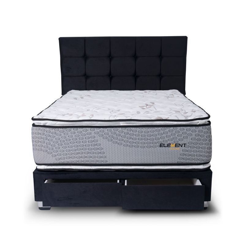 Dormitorio Element une exclusividad y máximo confort en un diseño pensado para el descanso superior. La tarima con cajones de madera tratada, secada al horno aporta solidez, distinción y gran resistencia, cabecera elaborda de madera selecta y tapizada con tela exclusiva en microfibra, mientras que el colchón se viste con un tapiz en tejido de punto de alto gramaje con tecnología avanzada que realza la experiencia de descanso. Su sistema de resortes Pocket se adapta al cuerpo, reduce sensación de movimiento y evita interrupciones durante el sueño compartido. Con espumas de alta calidad y diseño de uso en ambas caras, ofrece mayor durabilidad y practicidad. Además, incorpora acolchados pillow top garantizando una sensación de descanso firme y agradable. Respaldo total con 10 años de garantía confiable años y 1 año par el dormitorio.
